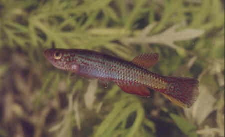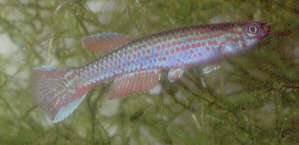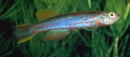 as pale blue). The red pigment in the caual fin is arranged in lines which 'flare out' to the fins end (some populations show this more than others). In halleri this red pigment is more heavy blotches. |