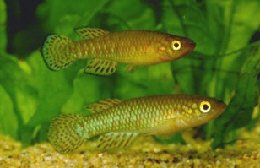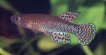This is an oddball sp. which may represent a remnant of an ancient group of fish possibly containing Nothobranchius. I spawned the Bafoussam population in water with a temperature of 70-72°F with a DH of 10 & a pH between 7·0 - 8·0 & found them quite prolific. This is quite different to there natural water. This sp. can be sensitive to build ups of dissolved metabolic wastes & regular water changes should be performed. |