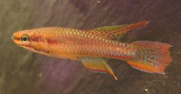 Lagos, Nigeria. History of the synonym Aphyosemion (Fundulopanchax) nigri Ahl 1935 Ahl described this species in 1935 from a single specimen reportedly collected from the mouth of the Niger River. This was given to Ahl by Siggelkow. The type specimen was kept in the Berlin Museum but was reportedly not examined by other zoologists. This specimen is presumed to have been lost now. The caudal fin was reported to be trilobate History of the synonym Fundulus rubrostictus Ahl 1928 Ahl described this sp. from 3 specimens