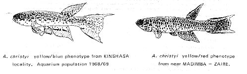 in & some of these were bought by Scheel. In 1959 further specimens were collected from the Ndjili River & the Binza River near Stanley Pool. Fred Wright (a former BKA Technical Editor) reported receiving them in the late summer of 1954 from a retail outlet in Redhill, Surrey. These were reportedly similar to the Aquarium Hamburg form. It is quite possible given the dates that this retailer had stock from Aquarium Hamburg. Confusion started between this sp. & A.christyi from Meinken's description due to a lack of information concerning seperating these species.