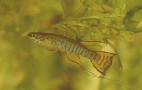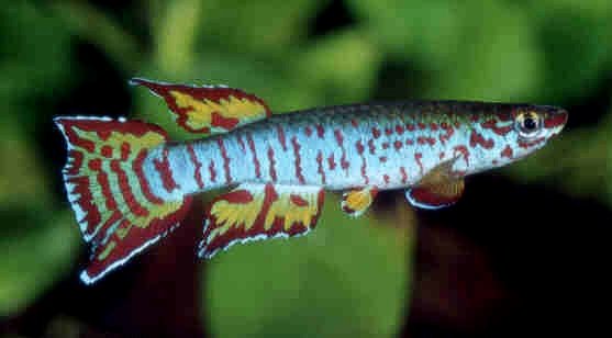 | Colour/Pattern Variability | Wildekamp considered them to be seperated by colouration of the unpaired fins which are yellow to orange bordered with red. The central part of the caudal fin is light blue with red crossbars (Wildekamp K/N 274 June 1988). | ||||||||||||