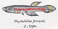 Boulenger described the species in 1910 from three specimens collected at Kondue, Kasai, southern Congo which were collected by M.E.Luja. In 1924 Myers examined this preserved material & placed them in Aphyosemion in his revision of 1933. In 1952 Poll reported the species from Kondue, Sankuru & Kese in the Kasai drainage. Between 1974 - 1979 Tyson Roberts collected around Bena Tshadi. These could be ferranti. |
