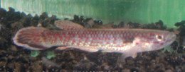 Difficult to confuse this sp. with any other Aphyosemion sp. They are long, elongated in shape & have great difficulty in swimming in mid water, always sinking rapidly. In the wild they are regarded as Mudskippers. Colouration wise the caudal fin has a wide outer margin at the bottom & a smaller outer margin at the top. |