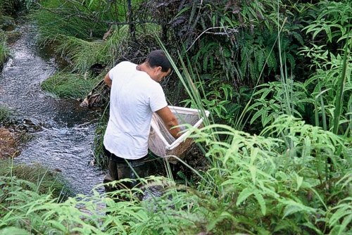 GJS 00/7 - Mbigou to Myanga GJS 00/8 - Takamogikou - Collected in a stream named Boungoma. Here we found a very handsome population of A.joergenscheeli that later actually split out into two different phenotypes - a very blue and a very red one.
