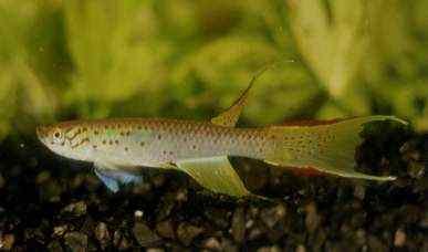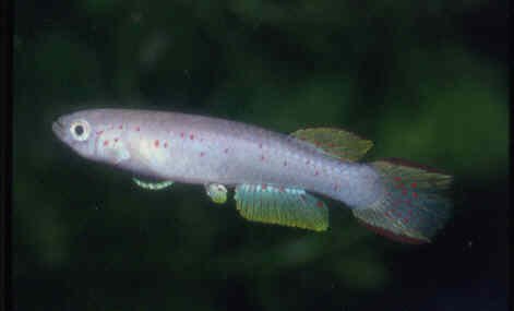 Both sp. are seperated geographically. A.polli has few spots on body & unpaired fins. Red outer margins to dorsal & top/bottom of caudal fin. |