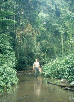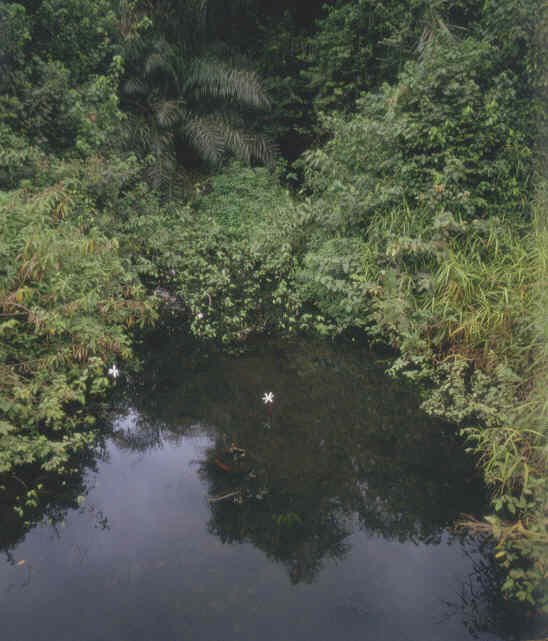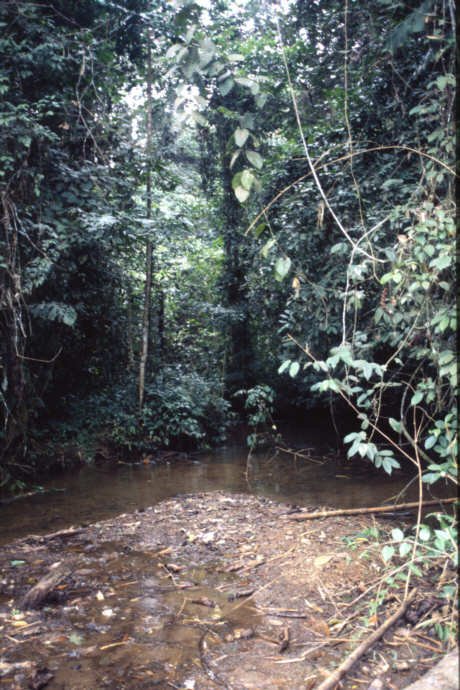 A brook which feeds the Douano River subsystem (Nyanga), close to Banyanga in the Mayumbe Mountains rainforest (altitude 250m). JH 76 / 27. |