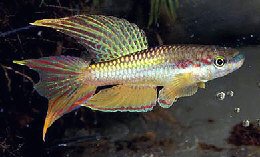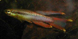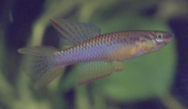 in the anal fin which is opaque orange with lateral bands 'fleeting & not