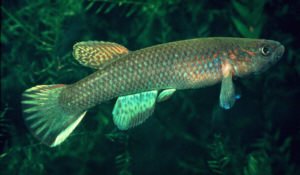 Prefers larger tanks with well oxygenated water. Eggs are found mostly in the lower areas of the tank according to some breeders & near the surface by others. . Scheel, in ROTOW 1 reports that the eggs 'develop & hatch without delay'. Reportedly not an easy species to breed. Incubation is variable. Reports quote hatching at 8 days in a water temperature of 70'F & 13 days at 76'F. Growth rate is quite fast with sexing out reported at around 6 months. Fry on hatching are quite large & capable of taking newly hatched brine shrimp. Males in breeding condition are said to display black colouration to the lower head area with the whole body becoming darker. Females display a dark oblong marking pattern down the sides. This pattern may be unique to this species. In BKA newsletter No.53, January 1970 Dick Armstrong reported that they take some time to colour up, but found them easy to spawn. Eggs were laid in top mops near the top & floating plants. Water incubation took around 10 days. The young grew very quickly with good feeding. It was noted that they appreciate water changes. A variety of water conditions are tolerated by this sp. from hard to soft although soft acid water shows the fish at their best. | ||||||