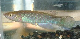 | Distinguishing Characteristics | Males are distinctively green in colouration. No red pigment is obvious on the fish although some can be seen through a microscope. This is usually found behind the eye or around the root of the pectoral fins.Females are reported as being 'very chunky'. | ||||||