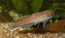 This is a very old species & may represent an ancient form from which Aphyosemion & other genera may have evolved. |