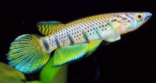 Most populations are easy to breed. It has been reported that some are more difficult but no details were given. This is a typical top spawner laying in floating mops. I incubated eggs in a seperate container. Water incubation takes around 14 days. I have put eggs on wet peat & hatched one month later without problem. The Lagos population commonly seen can be prolific. Growth is quite fast with sexual maturity being attained around 5-6 months. The wild fish I had in 2004 were put one pair