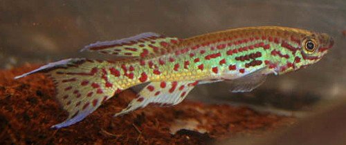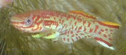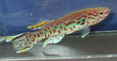 The anal fin seems to be a constant in males a couple of generations from wild, being pale blue with red spots. | ||||
