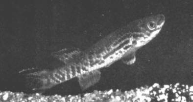 at 72°F. Hatching occured in 15-20 days. Later spawnings were observed in the floating mops & filter wool used to block a hole in the cover glass. More eggs were found in floating mops than peat fibre in subsequent spawnings. Eggs from these later spawnings were again water incubated & found to take 33-40 days to hatch in water at 72°F. Wild fish were timid in tanks without vegetation & adequate top cover. Females were less timid. Fry were small on hatching & fed 'Liquifry' as a first food with newly hatched brine shrimp following on 3 days later. Growth rate was rapid up to three quarters of an inch. |