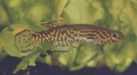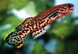 A heavily spotted population. Anal fin pale blue with heavy red spots & a dark outer margin. | ||||||