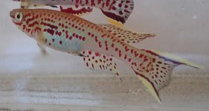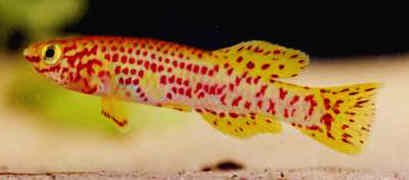 Anal fin shows the characteristics of Fp.gardneri gardneri with a spotted pattern without marginal & sub-marginal bands. Yellow & blue phases show a pale blue. | ||||||||