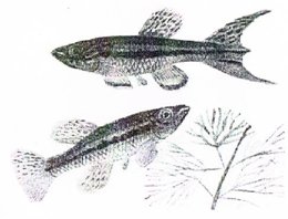 Collected eggs were stored in damp peat moss for 3 months at about 72°F. First signs of sexing I noticed around 2·5 cm with a dark horizontal line gradually becoming darker. This showed males coming through. At this stage these individuals would become decidedly more aggressive. Jaroslav Kadlec reported that young fry did not like a drop in temperature. Fry would refuse to eat & would be dead within days. He found they did best if raised at 22-23°C for the first 2-3 weeks & then raise the temperature to 24-27°C. BKA Journal 351, December 1994. | ||||||||||||