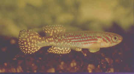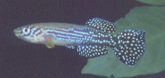 by the numerous gold/yellow spots in the unpaired fins & rear half