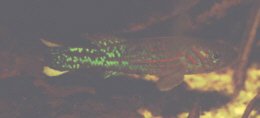 In BKA No.63 observations noted them to be shy, preferring the bottom half of the tank. Eggs were laid in bottom mops. The water depth was 5".. Water temperature 74°F, pH 6·6, DH 7. Eggs which were water incubated at a temperature of 72°F hatched in 16 days. |