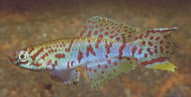 Regarded as a difficult species to breed. Reports suggest using a peat substrate which can be taken out every few weeks & dried. Dry incubation takes about 4-6 weeks. On wetting, water of 16-18°C has been used succesfully. Fry are large enough to take newly hatched brine shrimp as a first food. Growth is quite rapid with sexual maturity being attained around 2 months.(Wildekamp 1995). Dr.A.C.Radda in BKA newsletter No.110, October 1974, considered them a bottom spawning sp. with a dry incubation of at least 3 months. Ed Pürzl experimented by wetting eggs after 70 days of dry storage but could not get fry to hatch. However, after 90 days of dry storage 30 fry hatched out. Latter wettings of this peat produced better results. Fred Wright wrote an article in BKA newsletter