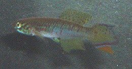 This sp. was seperated from it's close neighbour Fp.rubrolabialis on the grounds of marking differences & the type of biotope they were found in. Fp.rubrolabialis is found on sedimentary soils whereas Fp.robertsoni is found on volcanic ground. Fp.robertsoni is more heavily marked on body & fins. The anal fin in all photos I have seen has no red line (this may yet appear in future collections). The red line in Fp.rubrolabialis is placed mid way through the fin. |