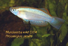 Trewavas reported them coming from running water & feeding on surface insects & insects from the floor of the habitat. P.sp.Yabassi was collected by Paul Blowers. He observed that a lot of Procatopus are found just down stream of where the locals process the sago trees, pounding the pith in the river shallows with the fish feeding on the debris. Apparantly these were so abundant that they couldn't lift the net from the water. |